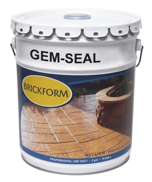 Brickform Gem-Seal is a premium quality, solvent-based acrylic sealer designed to protect architectural concrete surfaces. A light coating of Brickform Gem-Seal helps to protect the concrete surface and provide resistance to oil, grease, and food stains. Gem-Seal is ideal for use on stained, colored, stamped, exposed aggregate and Brickform resurfacing products.